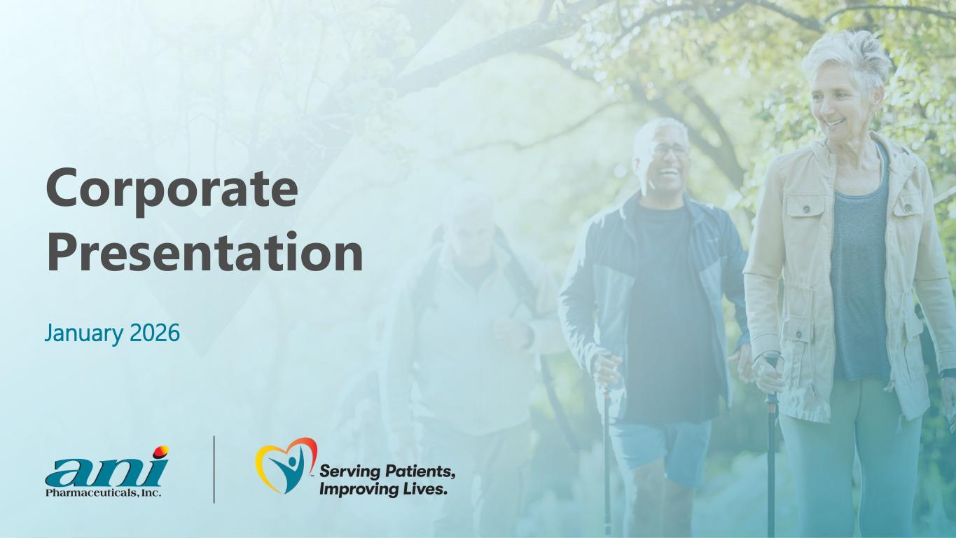PRINCETON, N.J., Jan. 12, 2026 -- ANI Pharmaceuticals, Inc. (“ANI” or the “Company”) (Nasdaq: ANIP) today announced preliminary select financial results for full year 2025, provided full year 2026 financial guidance, and outlined its strategic priorities for continued growth. Nikhil Lalwani, ANI’s President and Chief Executive Officer, will discuss these updates as part of a presentation at the 44th Annual J.P. Morgan Healthcare Conference on Tuesday, January 13, 2026, at 3:00 p.m. PT/6:00 p.m. ET.