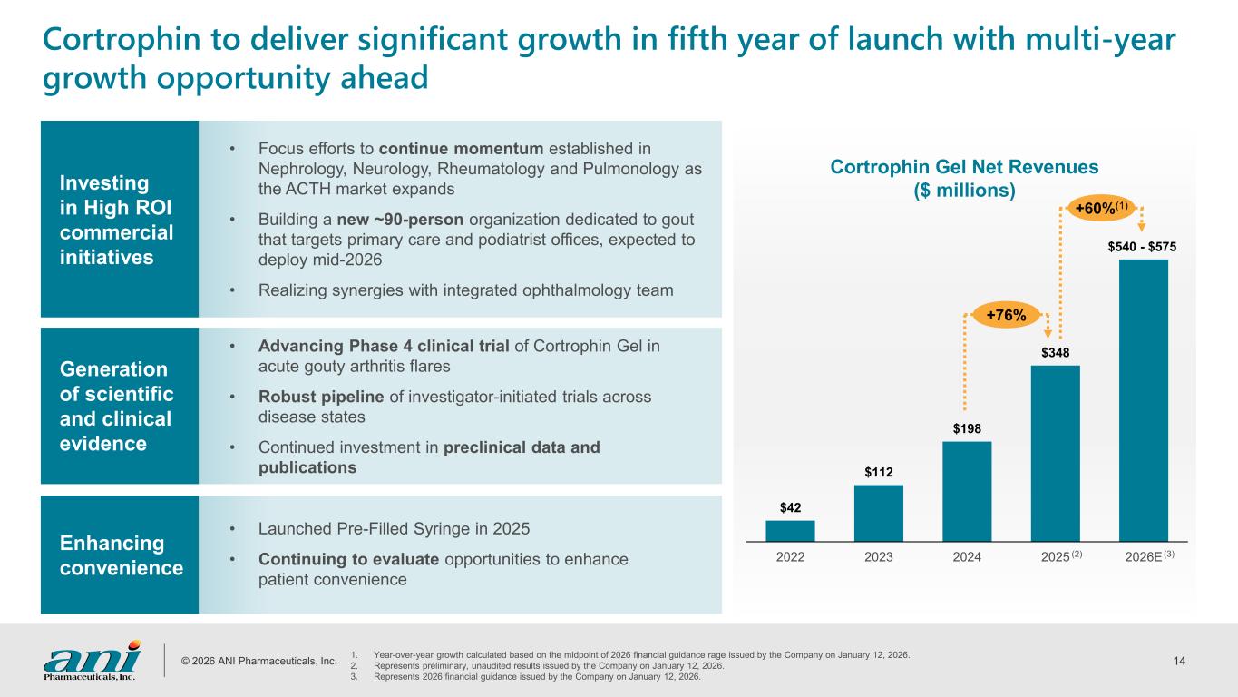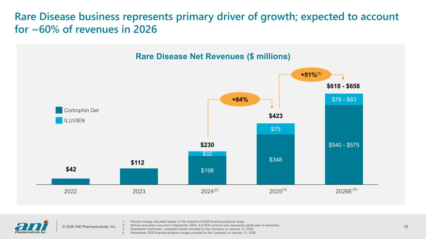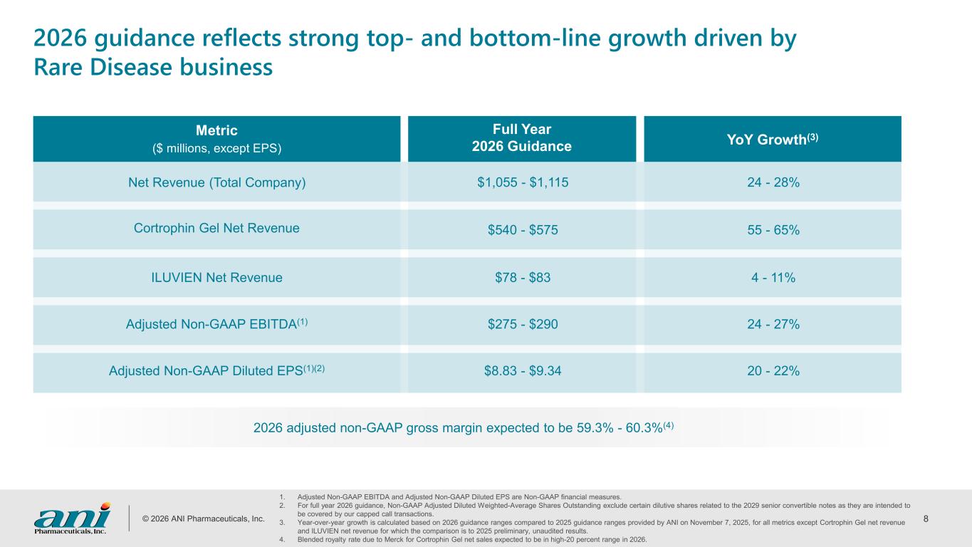 3.Year-over-year growth is calculated based on 2026 guidance ranges compared to 2025 guidance ranges provided by ANI on November 7, 2025, for all metrics except Cortrophin Gel net revenue and ILUVIEN net revenue for which the comparison is to 2025 preliminary, unaudited results.