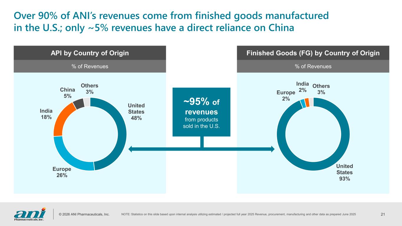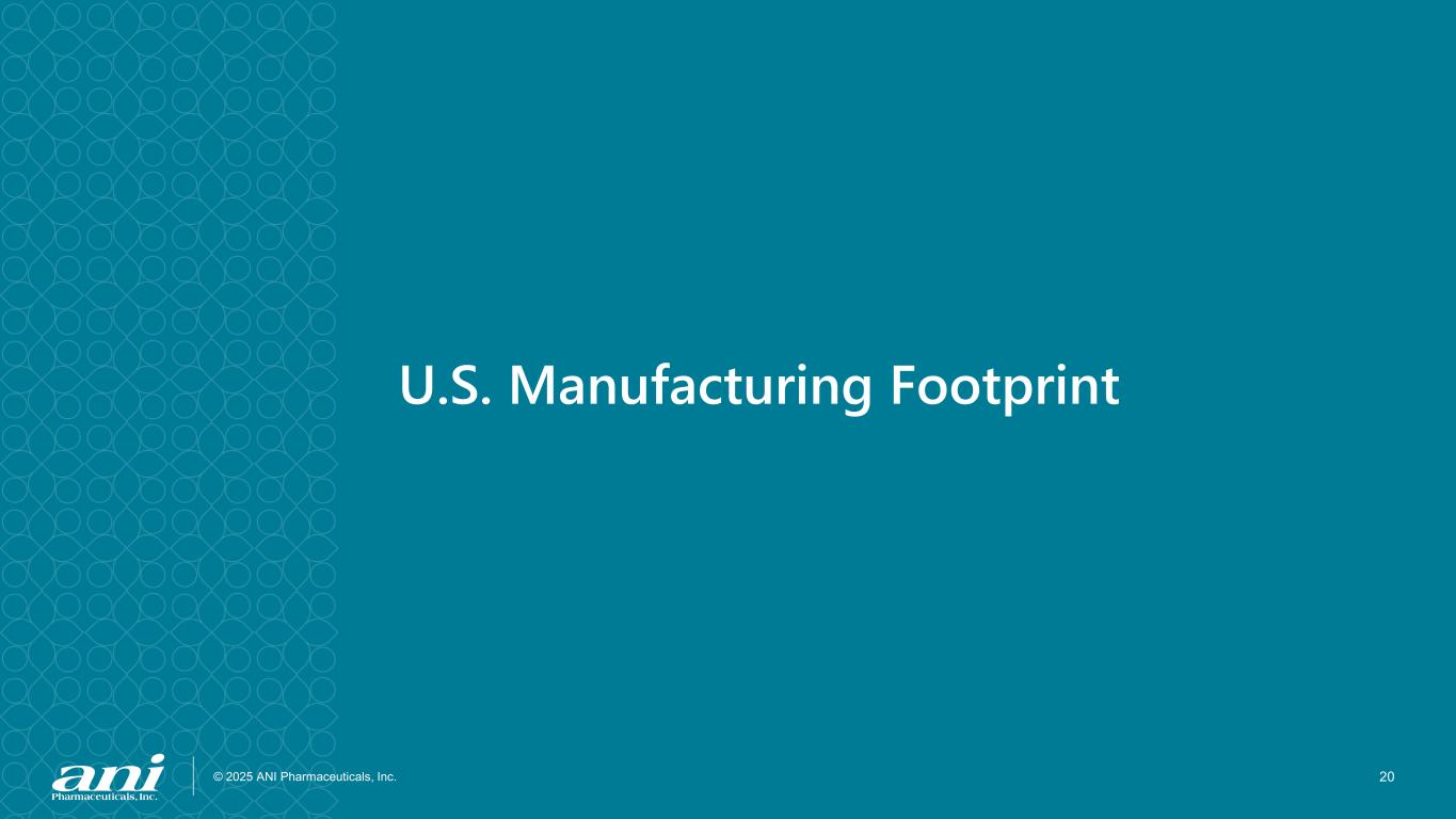 © 2026 ANI Pharmaceuticals, Inc. 205 U.S. Manufacturing Footprint